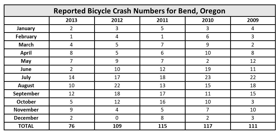 In 2011, transportation officials in Bend, Oregon, decided to do something about the alarming rate of bike/motor vehicle crashes. The top four causes were wrong-way riding, failure to obey traffic control devices, improper lighting and reflective devices, and right hooks. Increased bicycle rider education was needed!